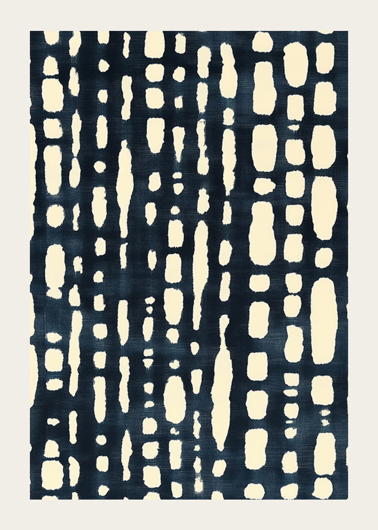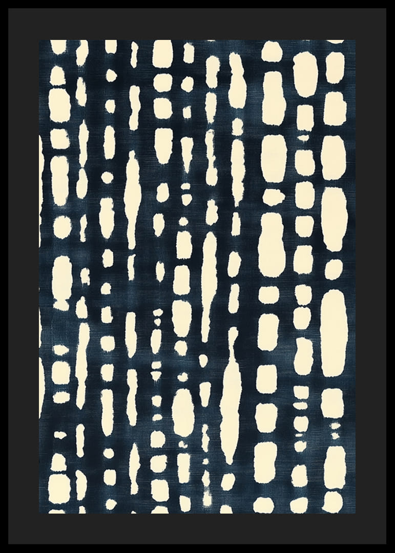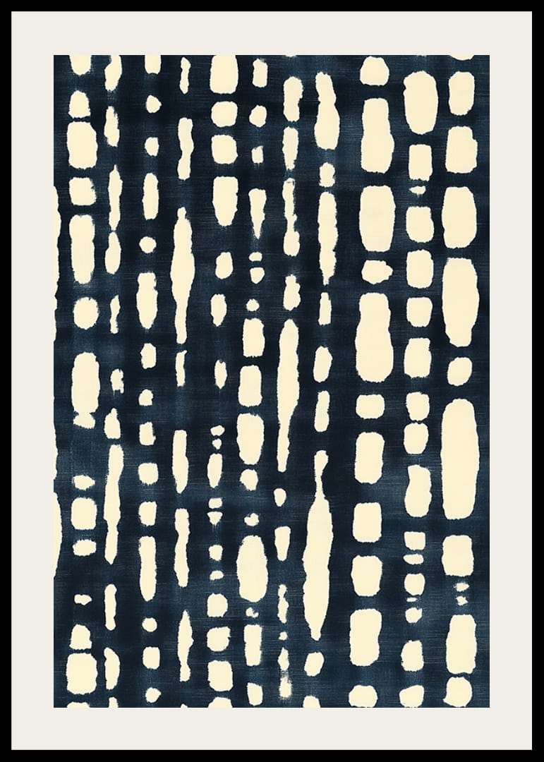 Denne plakaten utstråler et moderne og stilig preg med sitt svart-hvite, abstrakte mønster. De organiske formene i kontrasterende toner skaper en dypere rytme som tiltrekker blikket og tilfører rommet et sofistikert element.
