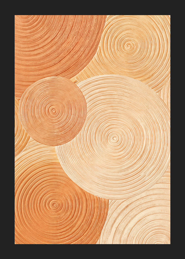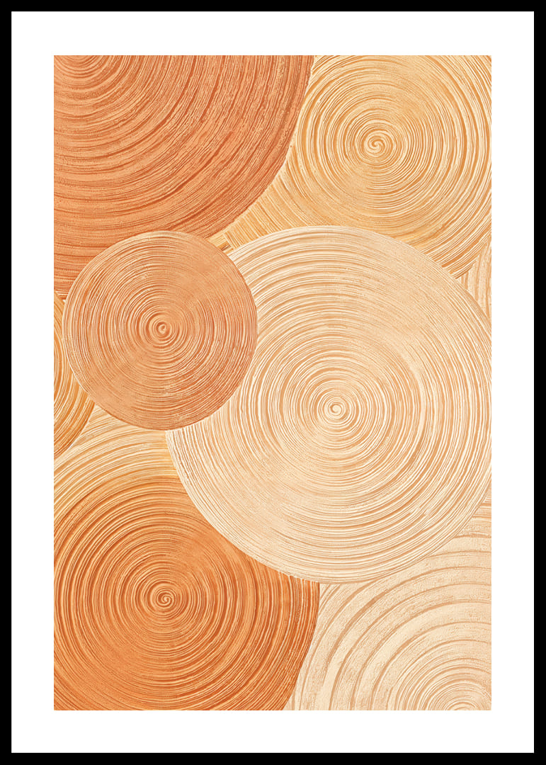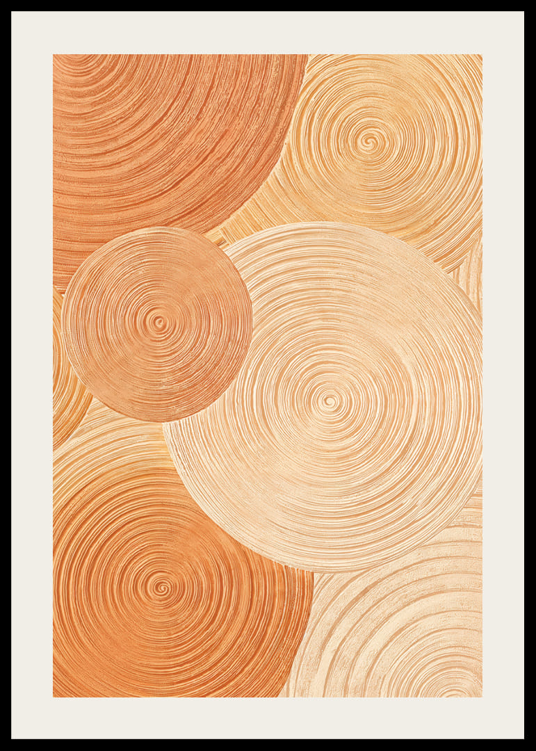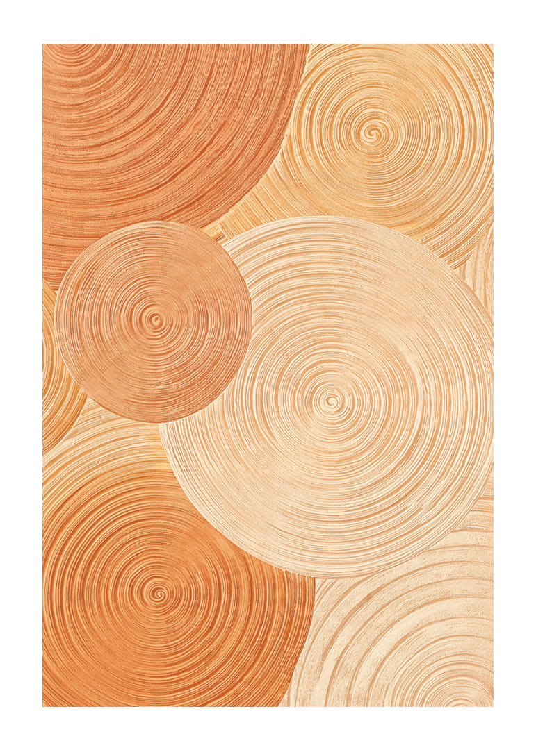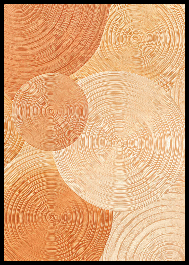 Denne plakaten fanger blikket med sine myke, sirkulære mønstre som danser i jordnære toner av gull og kobber. Hver sirkel virvler rundt med energi samtidig som den utstråler ro og balanse. Plakatens varme og harmoni inviterer deg til en fredelig atmosfære og er et perfekt element for å forskjønne ethvert rom. Det kunstferdige mønsteret gir et stilig og sofistikert preg til hjemmet ditt.