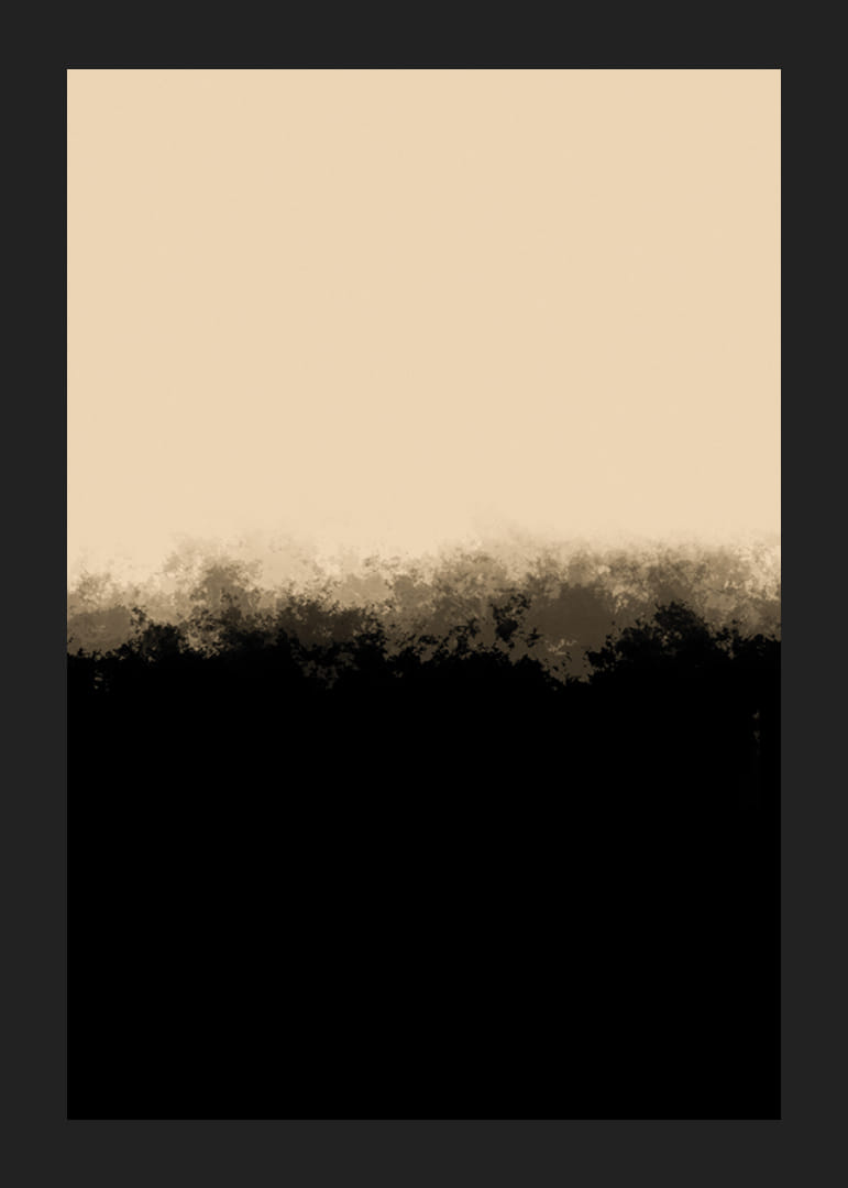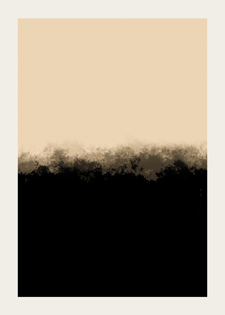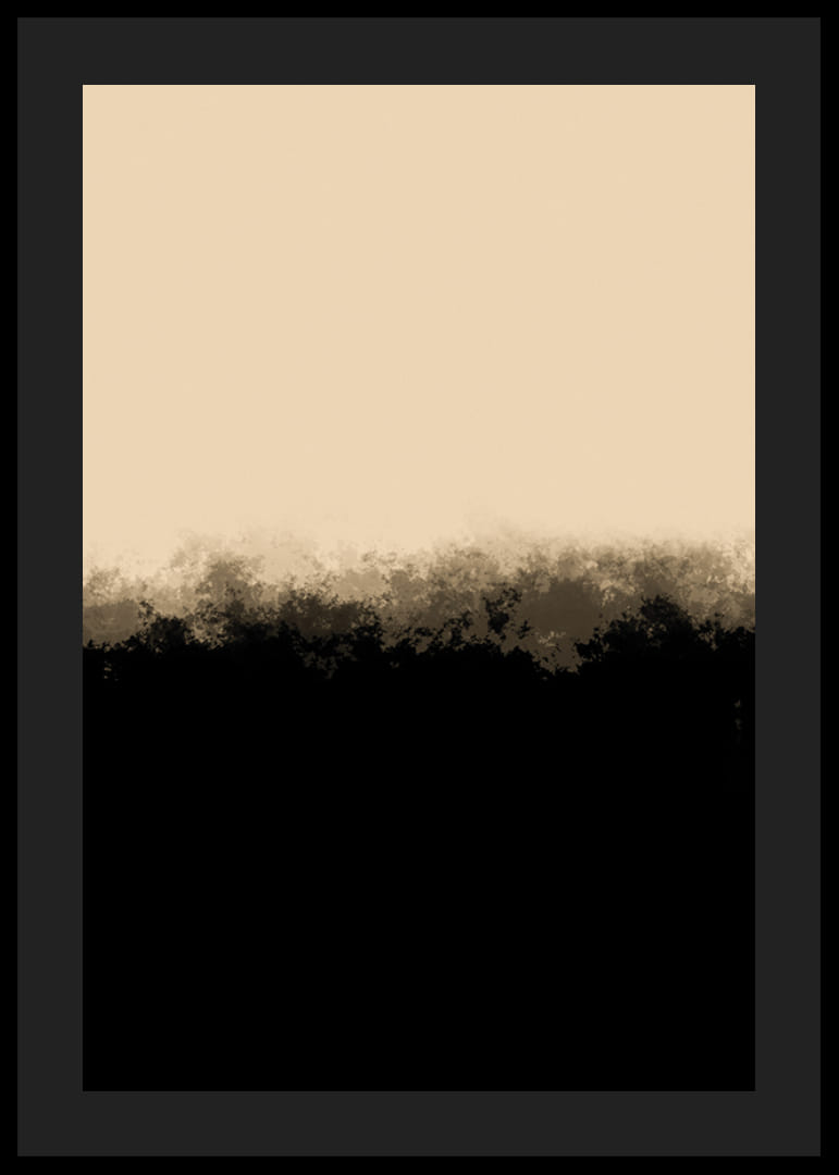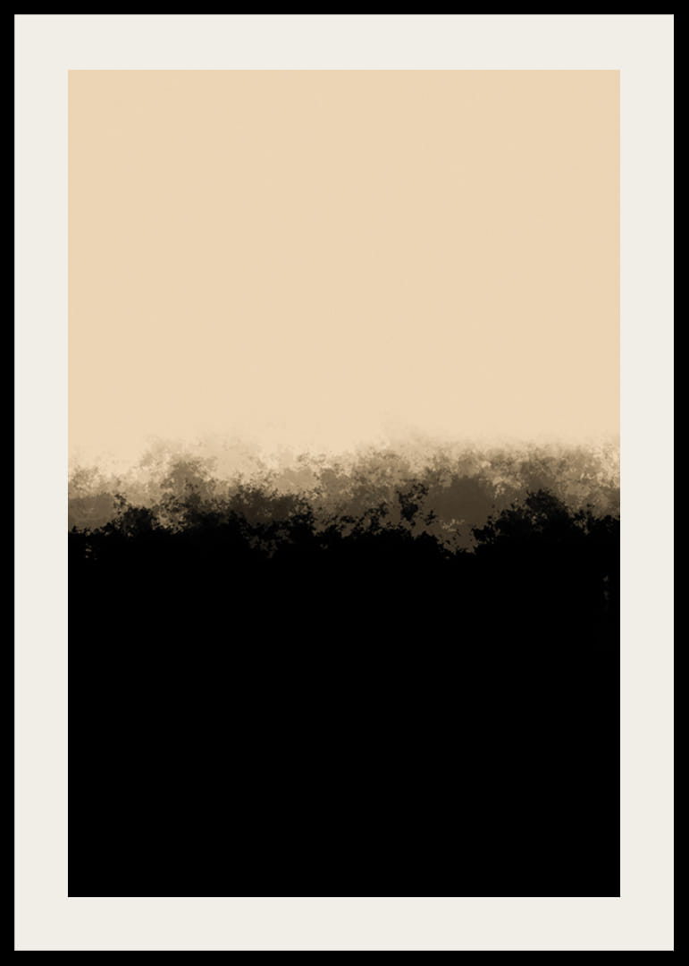 Myke overganger mellom svarte og beige felt skaper et forenklet abstrakt motiv. Den øvre delen domineres av en lys, varm tone, mens den nedre delen er dyp svart med diffuse kanter. Kombinasjonen gir denne plakaten et moderne preg som passer til ulike miljøer, spesielt der man ønsker rolige og stilfulle uttrykk.