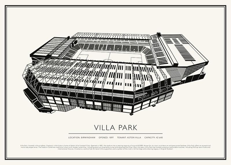 Villa Park, som ligger i Birmingham, England, er det historiske hjemmet til Aston Villa Football Club. Stadionet ble åpnet i 1897 og har en sittekapasitet på rundt 42 000. Villa Park er kjent for sin ikoniske arkitektur og lidenskapelige fanbase, og tilbyr en eksepsjonell kampdagsopplevelse. Stadionet kombinerer tradisjonell sjarm med moderne fasiliteter, inkludert førsteklasses gjestfrihetssuiter og avanserte fasiliteter. Gjennom årene har Villa Park vært vertskap for en rekke minneverdige kamper, inkludert semifinaler i FA-cupen og internasjonale kamper. Det er fortsatt et sentralt knutepunkt for Aston Villa-supportere og et symbol på klubbens rike arv og varige arv i engelsk fotball.