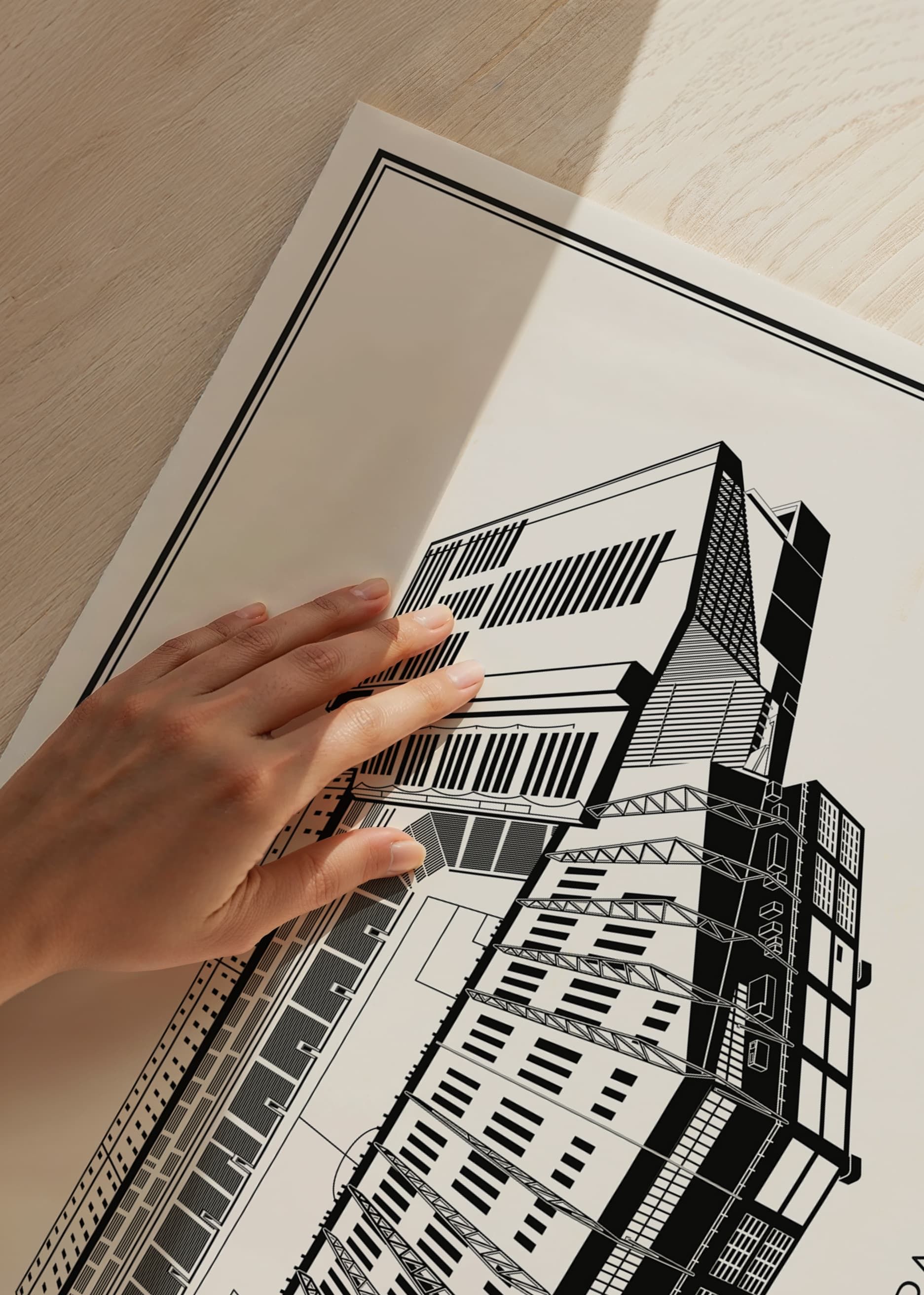 Vi trykker plakatene våre på 200 grams matt papir av høyeste kvalitet fra den franske papirfabrikken Clairefontaine. Papiret er miljøsertifisert FSC og produksjonen Svane/EU Ecolabel-merket.