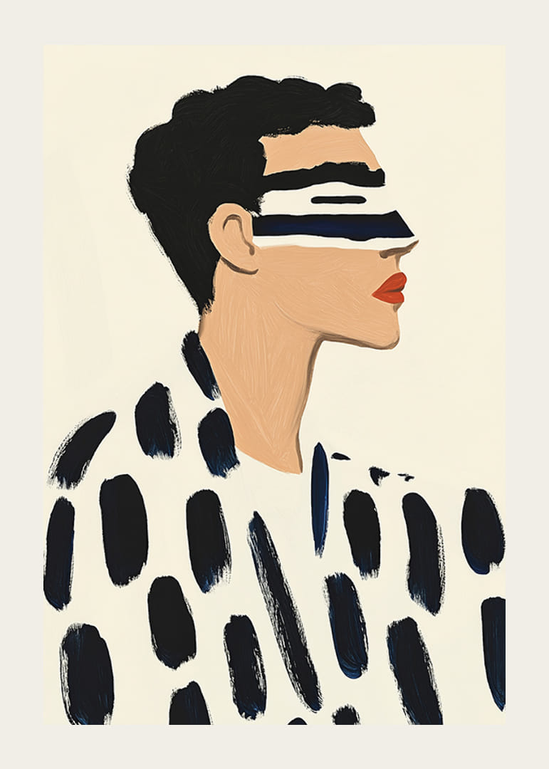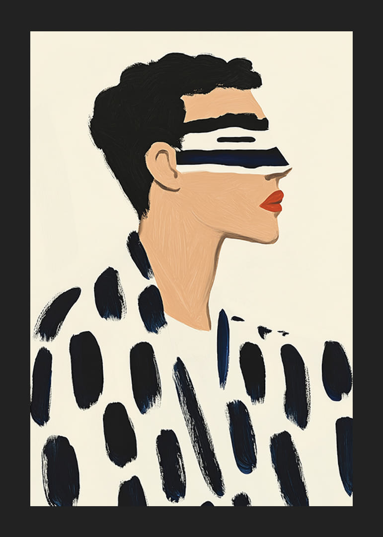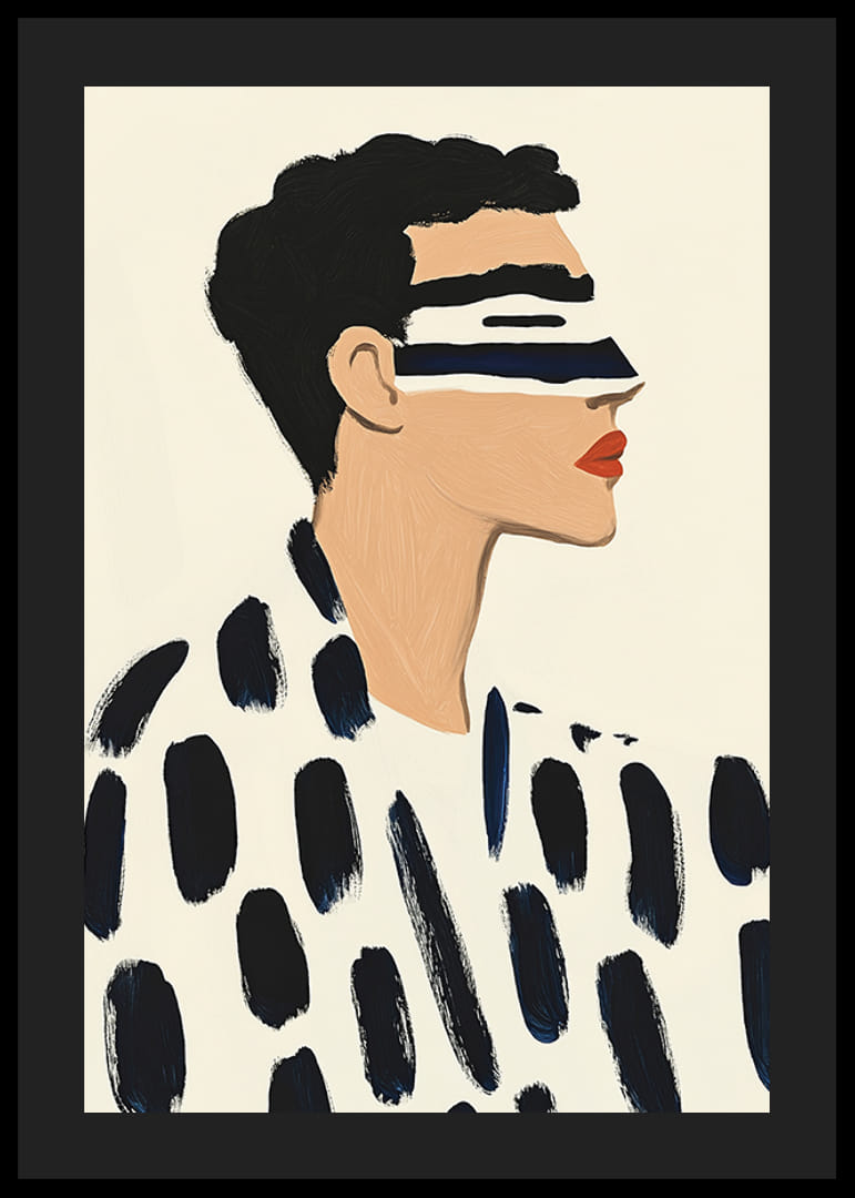 Oppdag kraften til denne imponerende plakaten, der minimalisme møter dristig stil. Med sine intense kontraster og karakteristiske penselstrøk fanger den både øyet og sinnet. Det moderne uttrykket, med svart-hvitt-paletten og et snev av rødt, skaper en stilig atmosfære i hjemmet eller kontoret.