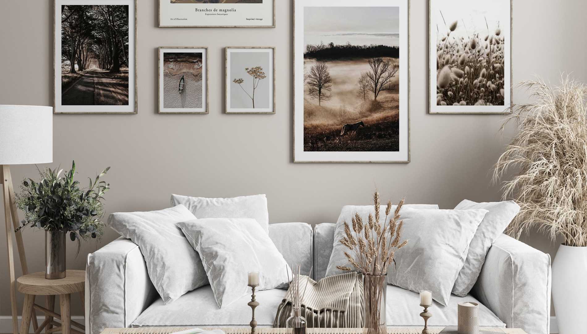New Scandinavian Design er preget av varme, naturlige, myke toner i nyanser av beige og brunt med innslag av grått og svart. Inspirasjon til utformingen av plakatene våre i dette temaet, både farge og form, er hentet fra vår vakre natur rundt.